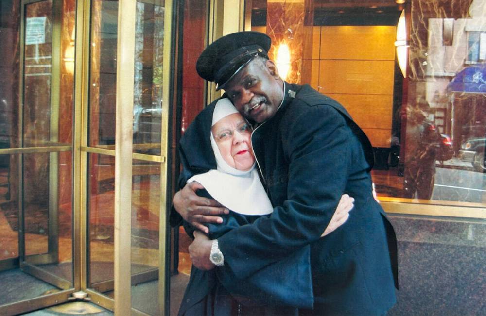 Dressed in the habit of ‘Sister Mary’ to attend a Broadway production of Sister Act, Mary Roberts hugged everyone in New York, recalls son Richard Roberts Jr., including this apartment door man.